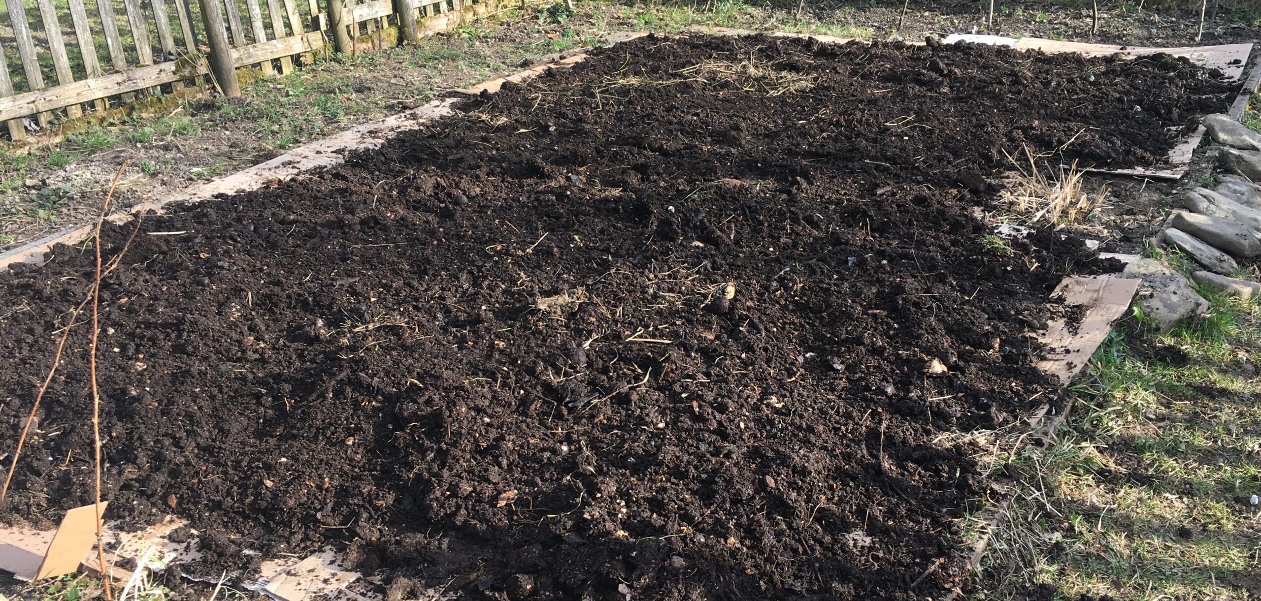 Aber ich habe mich entschieden: Dieses Jahr folge ich Dowding Methode! Kein Umgraben zu keiner Zeit! Ich werde in den nächsten Wochen meinen Boden abdecken – un zwar nur mit Pappe. Schwarze Folie kommt mir nicht in den Garten. Egal wie langlebig die auch sein mag, ich will kein Plastik im Garten sehen und vor allem nicht, wenn es auch anders geht. Pappkarton fällt im Zeitalter der Internetkäufe von alleine an – wenn nicht von mir, dann von anderen. Das zeigt ein Blick auf den nächsten Werkstoffhof, wo man sich auch gleich bedienen kann. Ich werde also meinen Kompost mal komplett abtragen und ihn dick auf die Pappe legen. Das wird meinem Garten gut tun, denn die magere Kartoffelernte im letzten Jahr hat gezeigt, wie ausgezehrt er doch ist. Ich bin gespannt und werde berichten– Stay tuned!